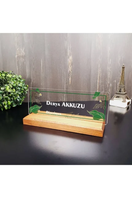 Kişiye Özel Modern Yaprak Tasarımlı Masa İsimliği