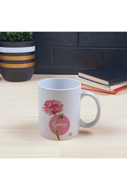 Kişiye Özel Ofis Masa İsimliği Ve Kupa Bardak Hediye Seti – Pembe Çiçek Desenli
