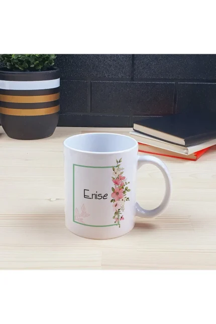 Kişiye Özel Ofis Masa İsimliği ve Kupa Bardak Hediye Seti – Çiçek Desenli