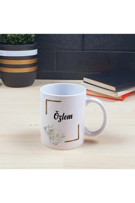 Kişiye Özel Ofis Masa İsimliği Ve Kupa Bardak Hediye Seti – Yaprak Desenli