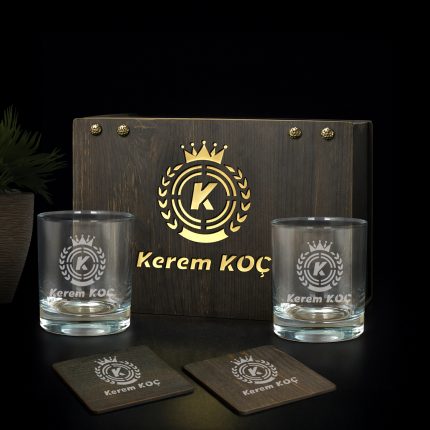 Kişiye Özel Viski Bardağı Seti -2 li İsme Özel Viski Bardağı – Ahşap Kutulu Premium Hediye