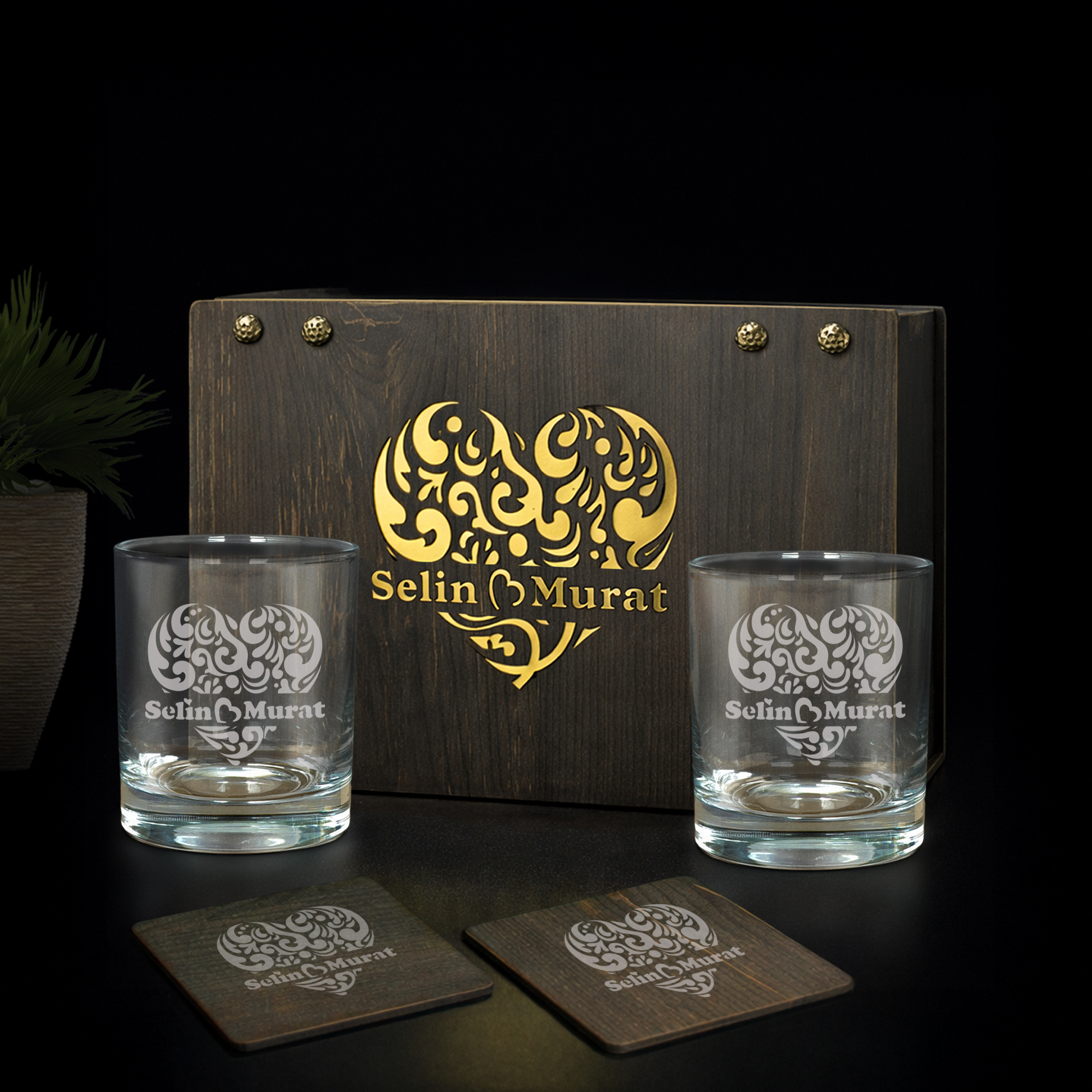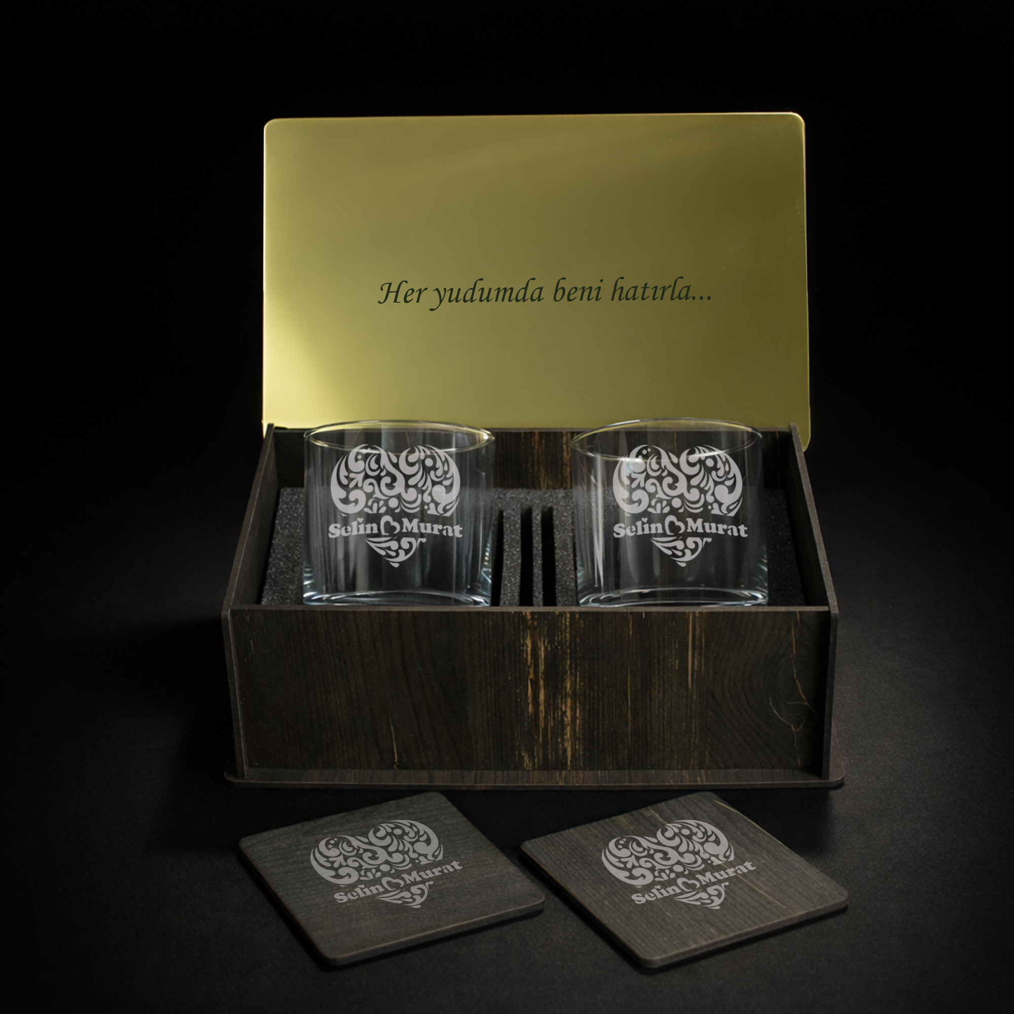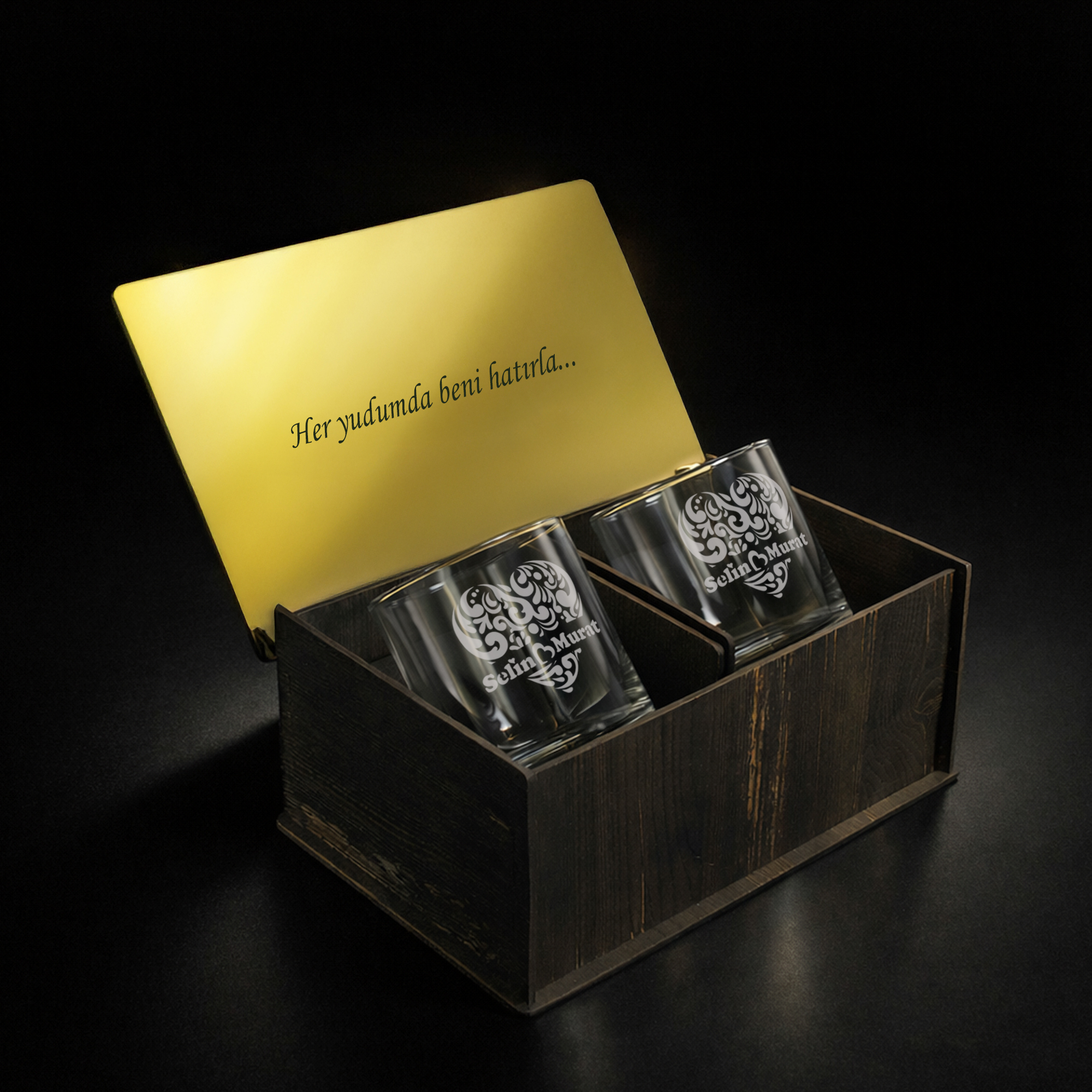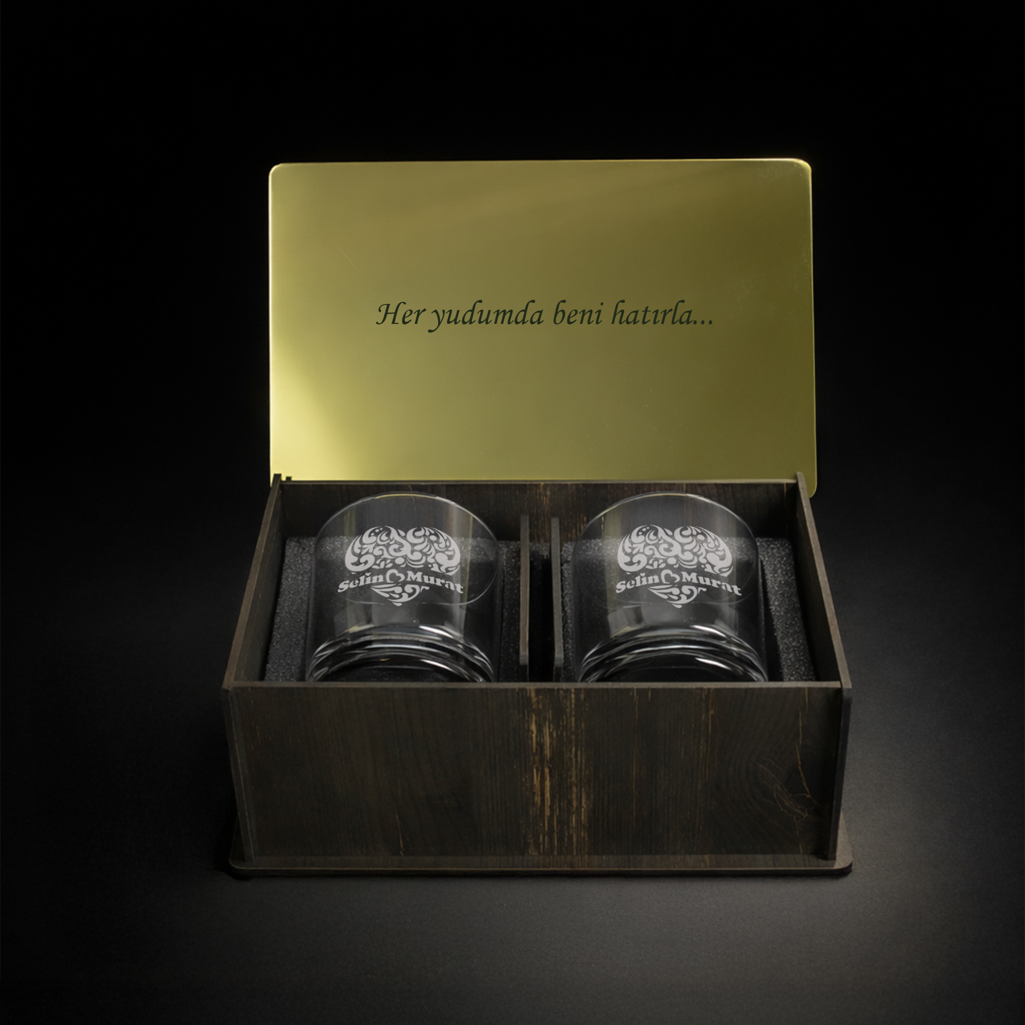 Kapak üzerinde altın detaylı özel ahşap kutu