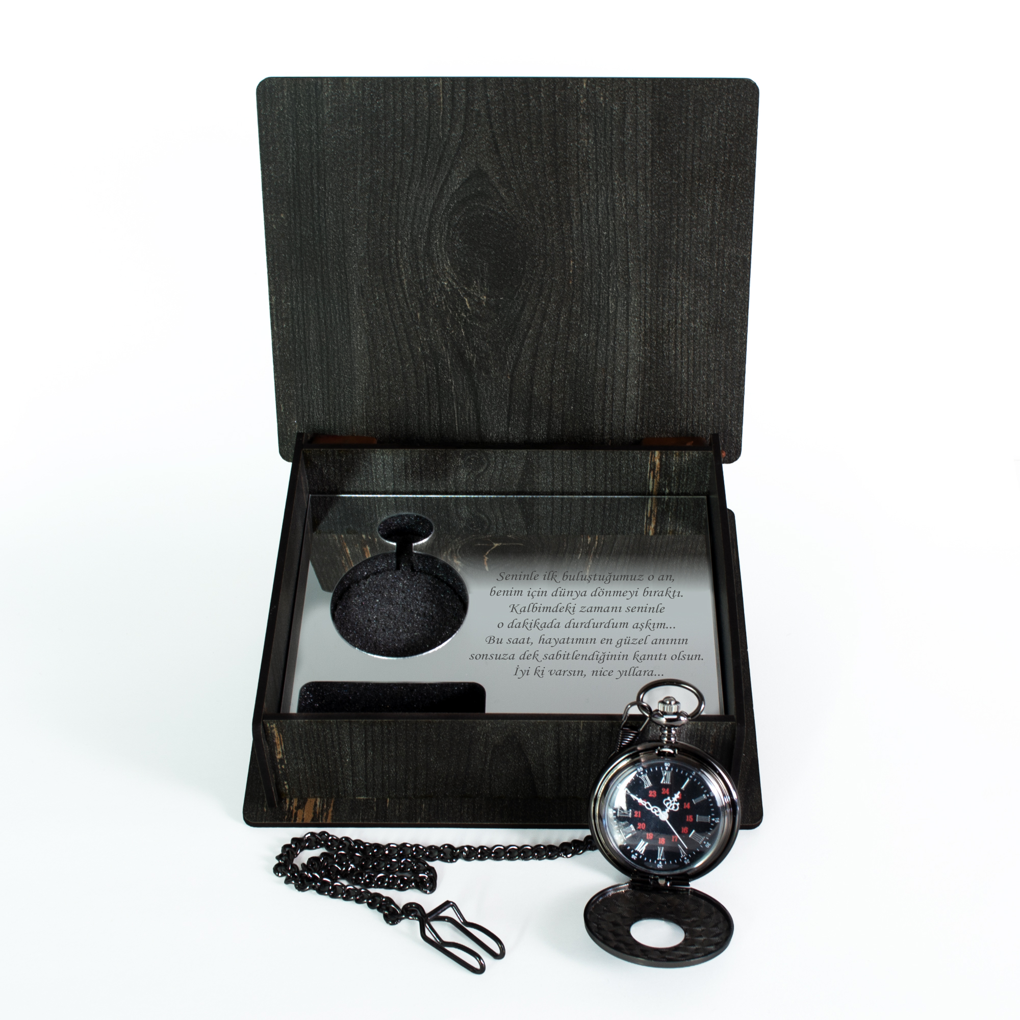Ana Sayfa Yılbaşı Hediyeleri Kişiye Özel Ahşap Kutulu Cep Saati – Siyah Cep Saati