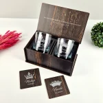 Kişiye Özel Kral & Kraliçe Taçlı Viski Bardağı Hediye Seti