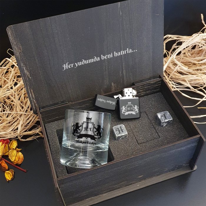 Viski taşları üzerine yine isim soyisim baş harfleri lazer yöntemi ile baskı yapılmaktadır.